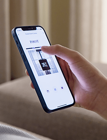 Bedien je gordijnen met een simpele swipe via de Forest Connect App. Met onze intuïtieve volstaat om vanaf de bank de gordijnen te sluiten. app bediening kun je je gordijnen moeiteloos openen en sluiten, waar je ook bent, en profiteer je van ultieme flexibiliteit en gemak in jouw dagelijkse routine.